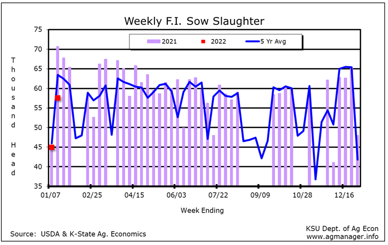 La rétention des truies- Les Etats-Unis ont consacré beaucoup d’efforts à étudier la perte des truies depuis 1 an maintenant en raison de diverses maladies ou encore de la Covid. Les producteurs sont probablement sur le point de mettre à contribution toutes les truies restantes afin de produite davantage de porcelets dans les prochaines semaines. Cette donnée sera TRÈS importante à suivre puisque nous pourrons déceler la craque dans l’armure des prix futurs (octobre / décembre 2022 / février 2023). On peut constater que, il y a quelques semaines, les producteurs n’envoient plus autant de truies vers les abattoirs. Un signe que la profitabilité est telle que les producteurs veulent augmenter leur production future?