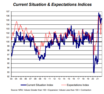 - La situation économique revient tranquillement à la normale suite aux confinements et restrictions sanitaires. Le problème présentement est la lutte à l’inflation et ceci pourrait faire mal aux portefeuilles du citoyen américain et canadien moyen. La hausse du prix de l’essence et la hausse des taux hypothécaires pourraient faire dérailler l’économie américaine (récession?). L’indice des restaurateurs pourraient être un indicateur des événements à venir. Pour l’instant, nous sommes encore dans le moment d’avoir-notre-vie-d’avant, mais quand l’exubérance du début sera terminé…. On verra ce qui suivra. Le consommateur devra faire attention à son budget au cours des prochaines semaines et ceci pourrait bien jouer sur le prix des viandes qui sont très chères.