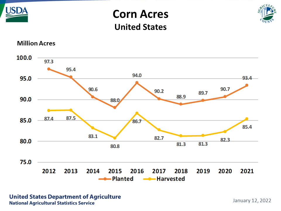 - Corn : 92 millions d’acres ? vs 93.4 l’an dernier.
