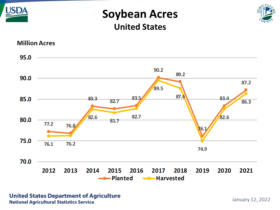 - Soybeans : 88 millions d’acres? Vs 87.2 l’an dernier.