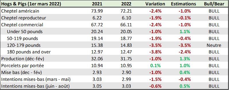 Voici les chiffres présentés par le USDA aujourd’hui dans son rapport Hog & Pig.
