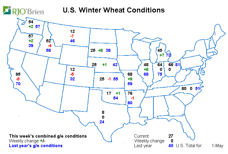- Blé hiver : très mauvais départ, 27% bon/excellent