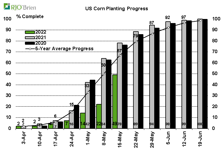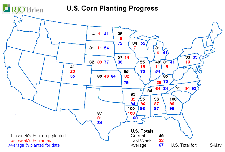 - Maïs : semé à 49% vs 22% la semaine dernière et 67% en moyenne