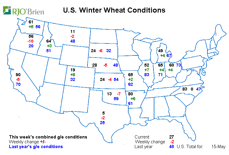 - Blé hiver : c’est pire… Baisse de -2% à 27% bon/excellent
