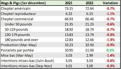 Essentiellement le marché s’attend à une baisse du cheptel et de la production sur toute la ligne. Le tableaux est en comparaison annuelle (juin 2021 vs juin 2022)