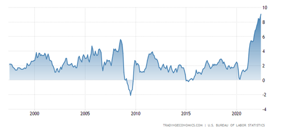 D’entrée de jeu ce matin, il faut souligner les données d’inflation sorties ce matin aux Etats-Unis. Sur une base annualisée, on parle d’une inflation de 9.1% ce qui constitue le plus fort niveau d’inflation depuis 1981. A l’époque souvenez-vous, certains avaient des hypothèques résidentielles à plus de 18% alors qu’aujourd’hui les familles paniquent à l’idée de payer plus 5%. Il est vrai que la valeur des maisons n’est pas la même… A première vue, la journée sera encore difficile sur les marchés financiers alors que ces données devraient relancer l’idée de hausses de taux d’intérêts agressives au cours des prochains mois. Les commodités seront très certainement vendues aujourd’hui et le dollar USD sera probablement encore à la hausse.