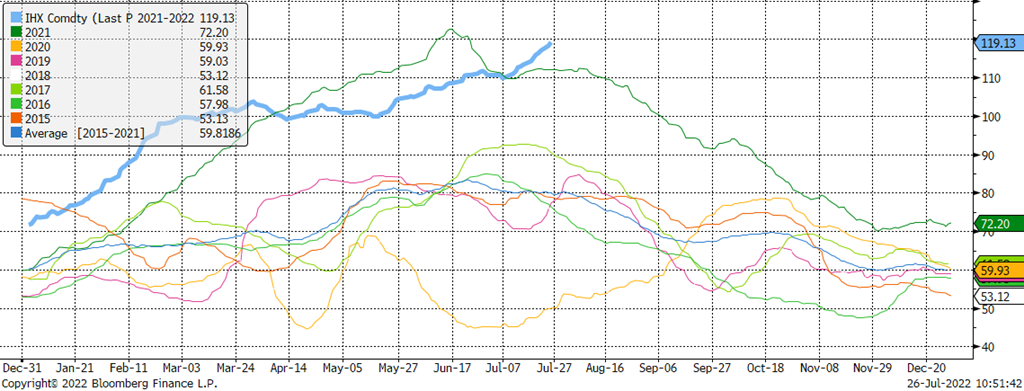 Je lisais quelques analystes qui proposaient l’explication suivante pour justifier la hausse de prix du porc sur le marché au comptant : ‘’Il n’y pas assez de porc finis et les abattoirs se font une concurrence féroce durant les mois d’été afin de remplir les carnets de commande pour septembre (retour à l’école). Le découpe est forte se haussant sur des niveaux pas atteint depuis 2014. Si on se fie à la saisonnalité, il est possible que les sommets du prix de la découpe aurait été attient. Ce n’est pas facile à déterminer, mais la semaine prochaine sera critique pour voir si la tendance se maintient.