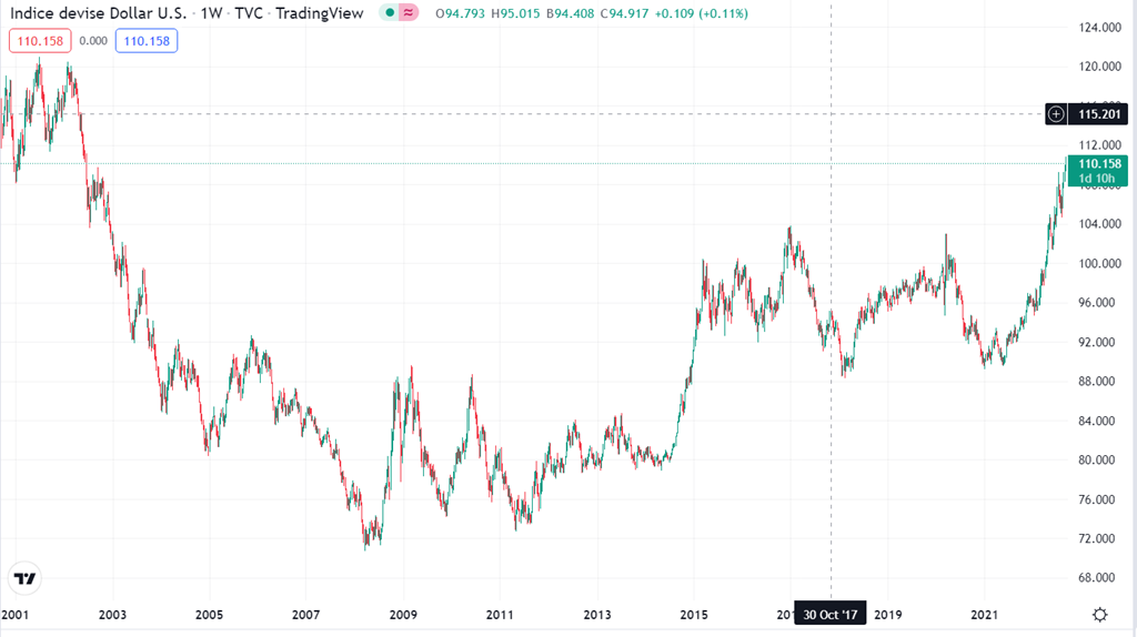 Graphique du Dollar Index (graphique 23 ans)