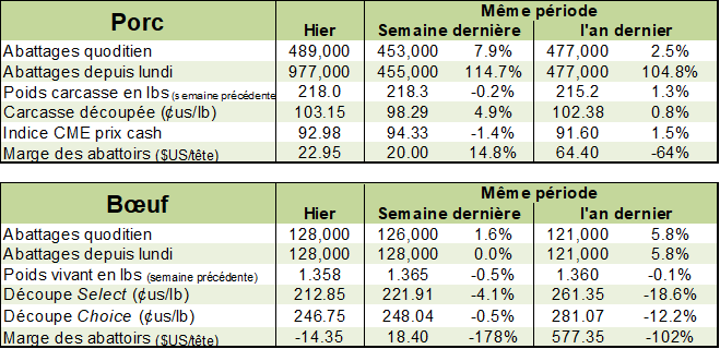 Le USDA a gardé quelques surprises pour la production de viandes, et ce autant dans le bœuf, le porc et la volaille. Toujours surprenant de voir un organisme gouvernemental changer son fusil d’épaule d’un mois à l’autre alors que les nouvelles sont pessimistes sur les productions en général.