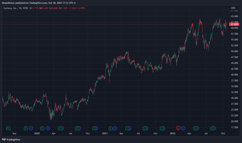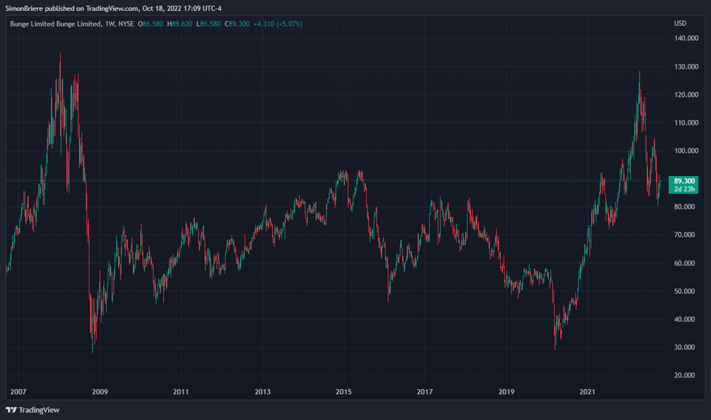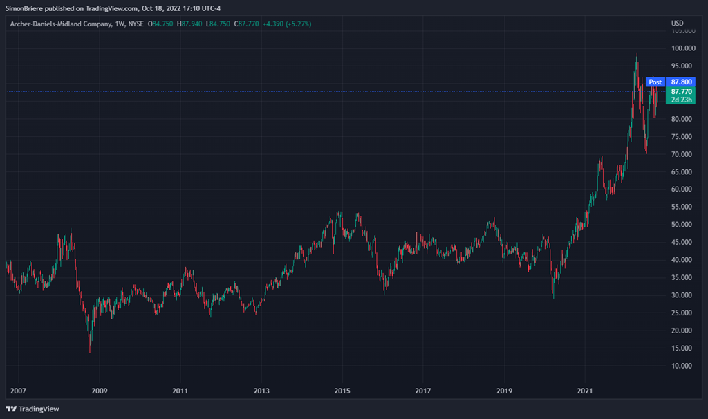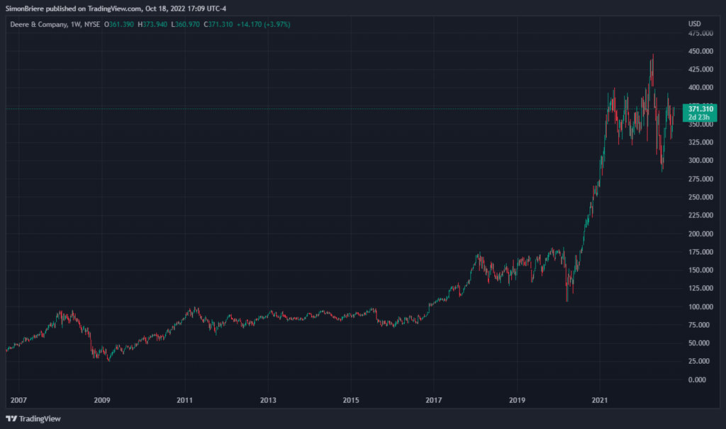 Le ‘financier’ agricole se porte « bien », dans l’ensemble. Je n’ai pas fait une analyse exhaustive du secteur mais je suis allé voir quelques titres agricole en bourse. Mon constat est que l’augmentation de la valeur des actions a été fulgurante dans les dernières années, et depuis un an la progression est plus difficile disons. Même un léger repli. Le stock market est souvent en avance par rapport à l’économie, donc de voir le secteur encore « correct » est un signe encourageant. Mais clairement, on ressens aussi l’essoufflement du secteur, surtout dans un environnement de hausse de taux d’intérêt; acheter une machine à 1.2M$ de dollar prend plus d’argument de vente pour convaincre du retour sur investissement selon moi.