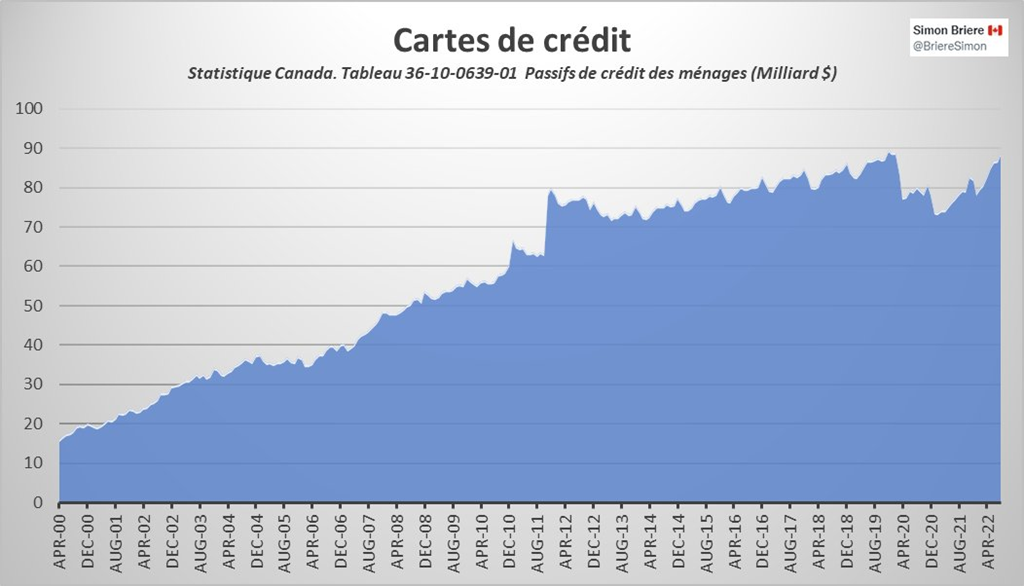 Pendant que les banques centrales hausses les taux d’intérêt drastiquement, je regardais le niveau d’endettement au CANADA qui atteint des record. Immobilier, hypothèques et cartes de crédit. On verra bien ou ca va aller tout ça…