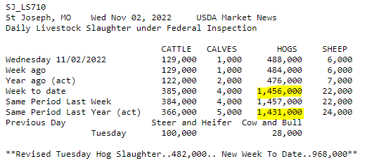 Le prix au comptant et la découpe ont aussi commencé leur descente. La question demeure jusqu’à quel niveau peut-il descendre alors que la majorité des analystes prévoient une baisse dans la disponibilité des viandes en générale pour terminer l’année 2022 et pour débuter l’année 2023? (https://www.tvanouvelles.ca/2022/11/02/craintes-dune-recession-de-viande-aux-etats-unis)