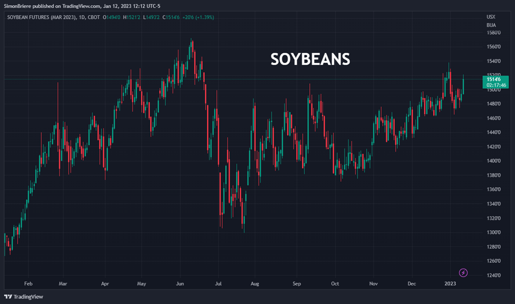 Rapport USDA très attendu. Je vais décortiquer plus en profondeur en fin de journée, mais à priori un peu positif pour les prix avec une baisse de production. L’Amérique du sud tombe aussi proche des prévision; moins de production en Argentine, et plus au Brésil. La réaction est positive, mais pas « tant que ça » non plus. Je ne pense pas que c’est le genre de rapport qui change énormément la structure du marché. À voir… mais pour le moment la bourse se maintient avec un marché haussier pour aujourd’hui.