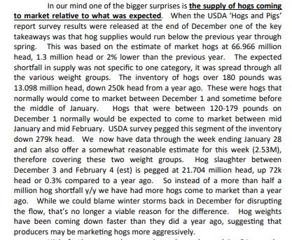 Il me faut revenir sur l’Extra viande de la semaine dernière qui s’interrogeait sur la production porcine aux Etats-Unis ces temps-ci et la disparité entre le rapport Hog & Pig de décembre et les abattages hebdomadaires en janvier. Pourquoi? Parce que même Steiner, à travers son article quotidien – Daily Livestock report- parle de ce phénomène plutôt inquiétant.