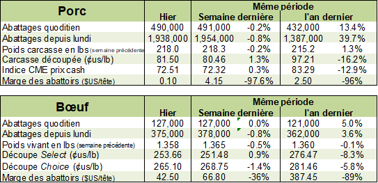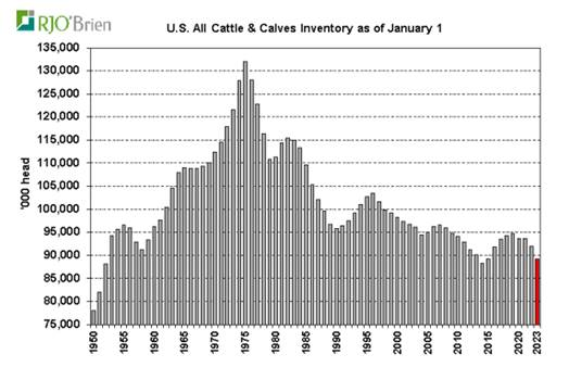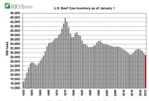 Un dernier mot sur le bœuf. Le USDA a présenté son rapport biannuel sur le nombre de vaches, de veaux et de bœufs dans les parcs et tous les bâtiments aux Etats-Unis.