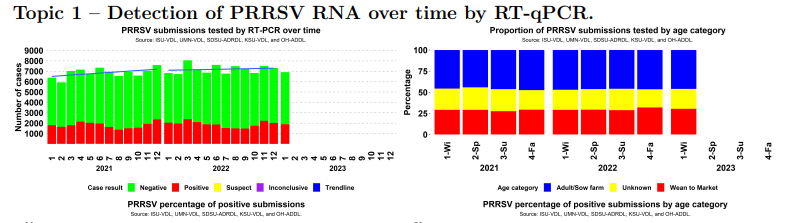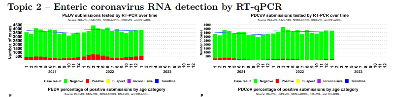 Depuis 2 semaines, je lis que les maladies (SRRP, DEP, etc) font un retour en force aux Etats-Unis. J’ai pris quelques instants pour lire le rapport mensuel du Swine Health Information Center (https://www.swinehealth.org/domestic-disease-surveillance-reports/) Ce qu’on y découvre est évidemment plus nuancé que nos commentateurs (cheerleaders) favoris! Il existe une petite tendance haussière, mais elle est très minime. Par contre, ce qu’il faut lire c’est la petite note attachée au bas de la page provenant des experts en épidémiologie.
