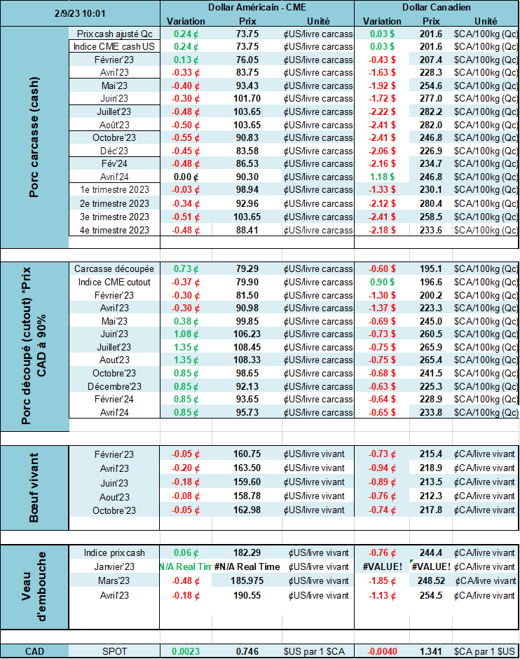 Il est difficile de voir comment le consommateur réagira en 2023 et surtout comment les acheteurs étrangers se comporteront. Il est encore tôt… Dans son rapport hebdomadaire du jeudi, le USDA a rapporté que les exportateurs américains avaient vendu 28 800 tonnes métriques. Le Mexique, Corée du Sud et la Chine étaient les 3 premiers acheteurs. Ainsi depuis 3 semaines, les exportations ne sont pas vilaines du tout (34 100 tonnes, 44 700 tonnes et 30 900 tonnes). Il ne reste que le consommateur américain qui doit compenser pour le reste de la demande. Avec le plus bas taux de chômage depuis 50 ans, il faut peut-être s’attendre à un retour en force de la consommation en général aux Etats-Unis ou peut-être une restriction moins sévère des dépenses. Même chose en China lors que le pays réémerge rapidement du ralentissement engendré par leurs politiques sanitaires. Il est difficile d’être véritablement négatif sur un retour de la demande éventuellement pour la viande. Mais les marchés semblent tellement pessimistes. Les spéculateurs doivent être rendus à plus de 15 000 contrats vendeurs dans ce marché (estimation personnelle).