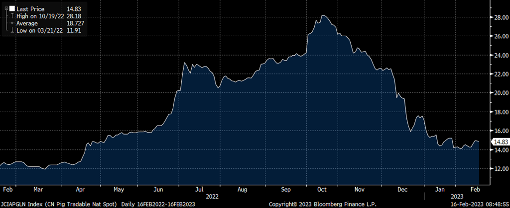 Le prix du porc en Chine ne bouge pas ou presque demeurant dans les bas-fonds des derniers mois. Mais, les autorités ont déclaré avoir remporté la victoire sur le contrôle de la Covid dans leur pays. Verra-t-on une meilleure demande sur les matières premières?