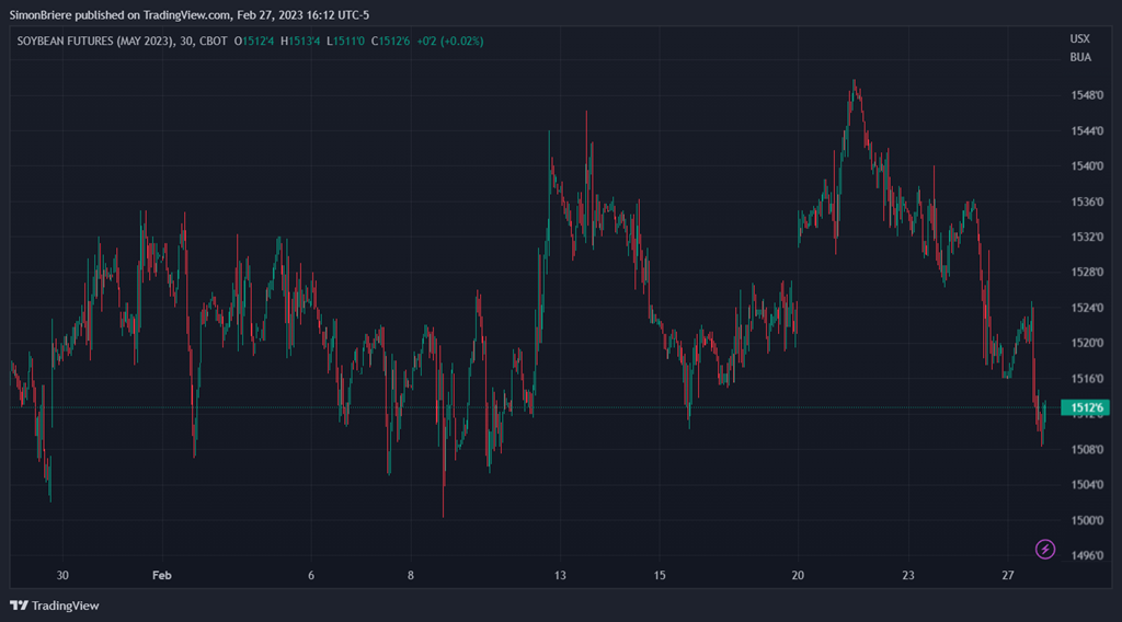 Normalement à ce temps-ci les prix sont plutôt stables, mais dans le contexte actuel de prix élevés, de volatilité élevée, d’inventaire serré, de guerre, d’inflation et récession imminente…. Parfois il ne faut pas trop se questionner sur chaque mouvement de prix. Les récoltes en Amérique du Sud vont okay, le Brésil va bien dans l’ensemble mais l’Argentine est aux prises avec une sécheresse. Certaines catégories de la demande montre des signes d’essoufflement ; comme dans la transformation d’éthanol, l’exportation et même à certains égards l’élevage. L’USDA mettre à jour ses prévisions pour les semis seulement dans un mois, donc d’ici là on peut s’amuser à spéculer sur les acrages de maïs ou de soja, mais ça vaut ce que ça vaut. Pour le moment, la bourse s’attend à voir plus de corn dans les champs américain.