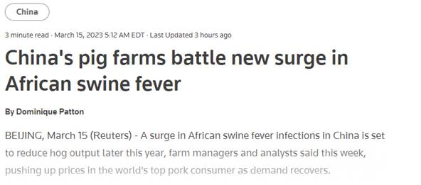 Il y avait plusieurs rumeurs qui circulaient récemment concernant une résurgence de la fièvre porcine africaine en Chine. Je n’osais trop en parler, mais l’agence de nouvelle Reuters a sorti un article sur le sujet ce matin. Jim Long, président de Genesus, avait écrit sur le sujet ce lundi avec chiffres à l’appui (provenant de producteurs et intervenants chinois apparemment). Il soutient que les producteurs chinois envoient tous les troupeaux vers les abattoirs, et ce, peu importe la taille de ceux-ci. La peur force tout le monde à liquider les porcs le plus rapidement possible et donc prendre la sortie la plus proche! Jim Long mentionne des chiffres dans son article que l’on doit douter puisque certains de ces chiffres me semblent trop gros pour être vrais… Mais sait-on jamais…