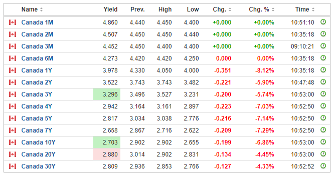 Mais on dit souvent ‘ à quelque chose malheur est bon’’ Le résultat de cette débâcle, les autorités financières devraient ralentir les hausses (ou même annuler) de taux d’intérêt. On parle même de baisser les taux d’intérêt dans les prochains mois. Ca va permettre aux gens de souffler un peu. Surtout, qu’on voit l’inflation diminuer tant au niveau des consommateurs que des manufacturiers. La récession nous guette et les pertes d’emploi s’accumulent. Regardez les variations de taux aujourd’hui les échéances 1 an par exemple…