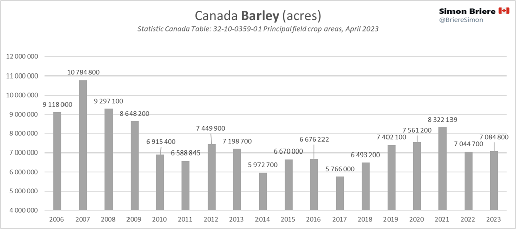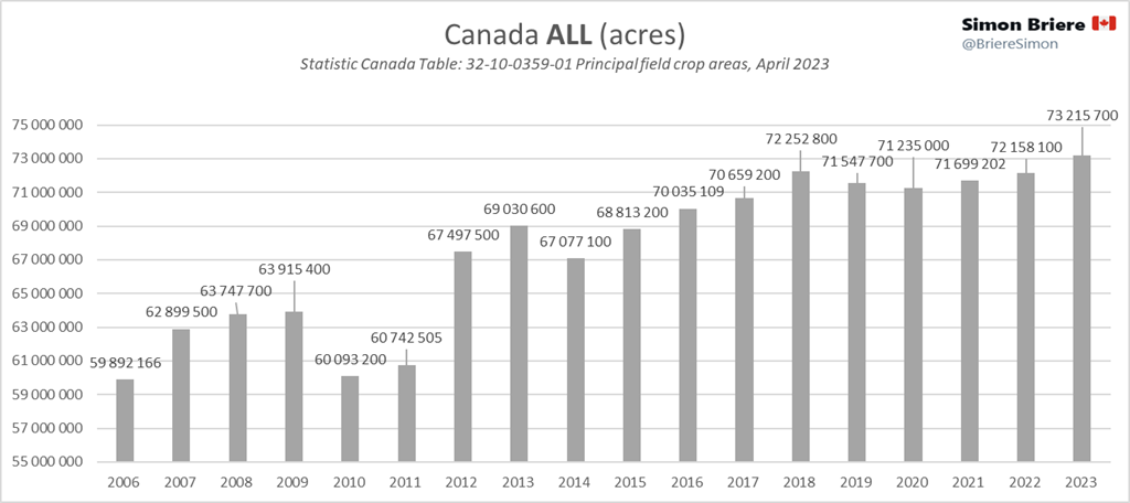 - Statistique Canada : Superficies des principales grandes cultures, 2023