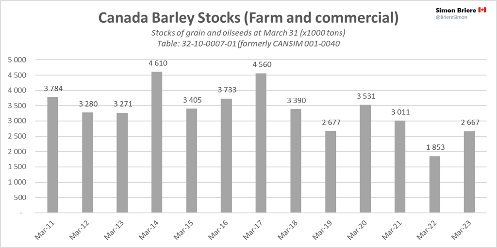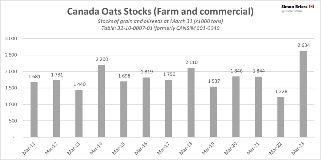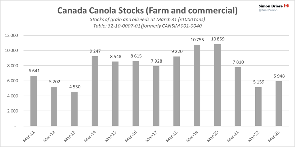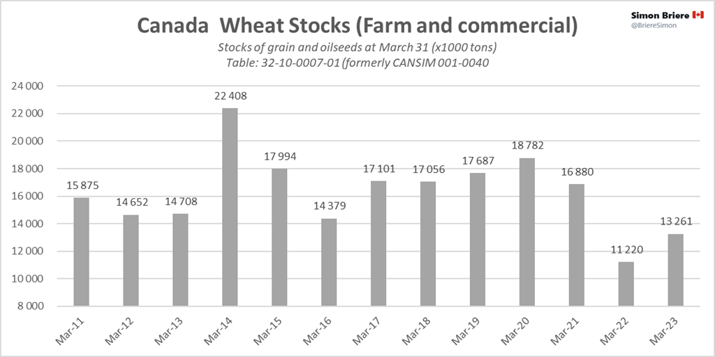 - StatsCan : Stocks des principales grandes cultures, 31 mars 2023