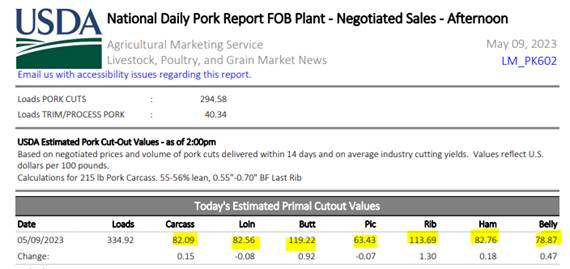 Parlant de marges et de profits, Tyson a révélé hier avoir perdu 97 millions USD durant le dernier trimestre de 2023. La baisse des prix dans le porc et le poulet et la hausse des couts (et le manque de bœuf) ont semblé créer ce déficit. Les dirigeants de Tyson mentionnaient que les prix du porc avaient baissé de 10.3% alors que le bœuf baissait de 5.4% Plusieurs analystes parlent maintenant de désinflation alimentaire en 2023…. Faudrait peut-être en parler aux grandes chaines d’épicerie qui vendent encore du jambon à des niveaux de prix pandémiques! La demande pour les viandes semble aussi plus modeste. Il faudrait stimuler la demande et faire sortir les inventaires et le meilleur moyen demeure l’incitatif du prix auprès des consommateurs. Consommateurs, qui malgré une baisse de leur pouvoir d’achat ne perdent pas leurs emplois alors que le taux de chômage frôle les creux historiques. Il est possible que certaines familles changent leurs habitudes alimentaires, mais nous le saurons que trop tard par rapport aux prix des contrats à terme.
