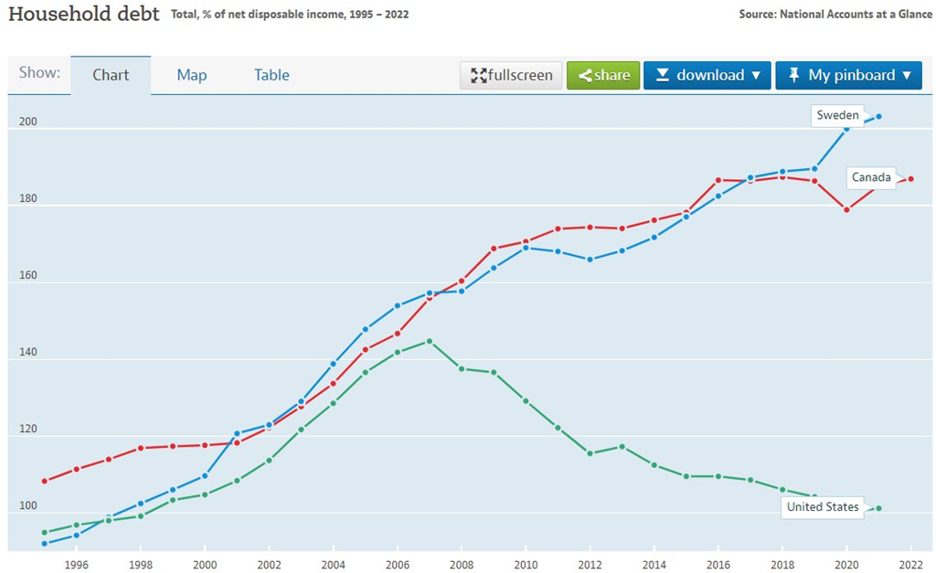 Sinon il pourrait se passer comme en Suède. J’ai habité en Suède au début de ma vingtaine. Un super beau pays j’ai bien aimé. Le marché immobilier suédois est comparable au notre. Le pays entier est comparable je dirais. Oui il y a des nuances, mais beaucoup de similarités; impôts, système de santé, climat, immobilier, immigration, etc… On est meilleur au hockey, ils sont plus blonds, mais à part ça on est ben chummy. Le Real Estate est aussi, très cher. Sweden House Price Index :