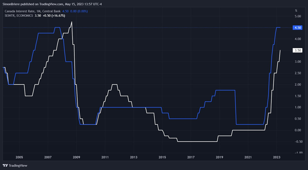 Nos taux d’intérêt aussi, même qu’au Canada la hausse a été plus sévère. 4.50% au Canada et 3.50 en Suède.