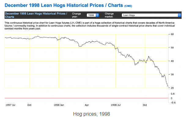 Graphique abattages 1998 (excès de l’offre – baisse du prix au comptant drastique)