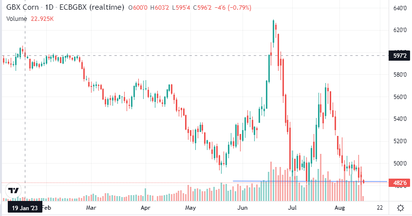 La glace sous nos pieds est bien mince sur le contrat de mais de décembre 2023. Le niveau de $4.80 agit comme support mais pour combien de temps encore?.... Faudrait pas que l’ours polaire vienne sur cette fragile banquise, ca va couler et rapidement….