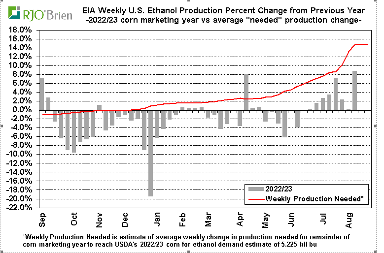 Pendant que tout le monde se concentre, avec raison, sur la production de mais et de soya à venir, je trouve qu’on oublie que la demande pourrait être plus faible en 2023 /2024. Le USDA a, à peine, effleuré l’idée de réduire la demande (exportations en baisse et un peu la consommation pour le feed). Mais il est plus que problème que ces chiffres diminueront dans les prochains rapports. Pensez simplement à l’éthanol qui n’arrive à rencontrer la production estimée par le USDA. Il faudrait donner un grand coup dans la production pour atteindre les objectifs du USDA. C’est virtuellement impossible. La demande pour l’essence n’est pas en croissance aux États-Unis.