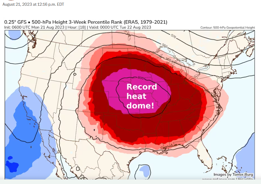Les négociants auront besoin d’un coup de pouce de la découpe et du prix au comptant. Dans les deux cas, les prix sont en chute libre depuis plusieurs semaines. Et les marges des abattoirs ont fondu comme du bacon dans un poêle chaude! MAIS rien n’est joué puisque qu’on essaie de voir comment les animaux vont réagir à la chaleur extrême cette semaine dans le Midwest. Plusieurs endroits ont vu des records de température être atteints pour cette période de l’année . Et on s’attend à ce que les températures demeurent bien au-dessus des normales de saison pour septembre (à voir l’effet sur les grains aussi et les gains de poids des animaux).