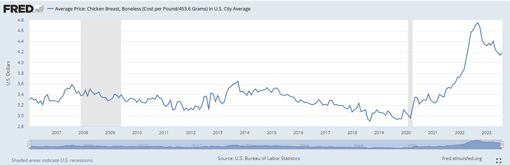 Prix de la poitrine de poulet (dollar / livre)