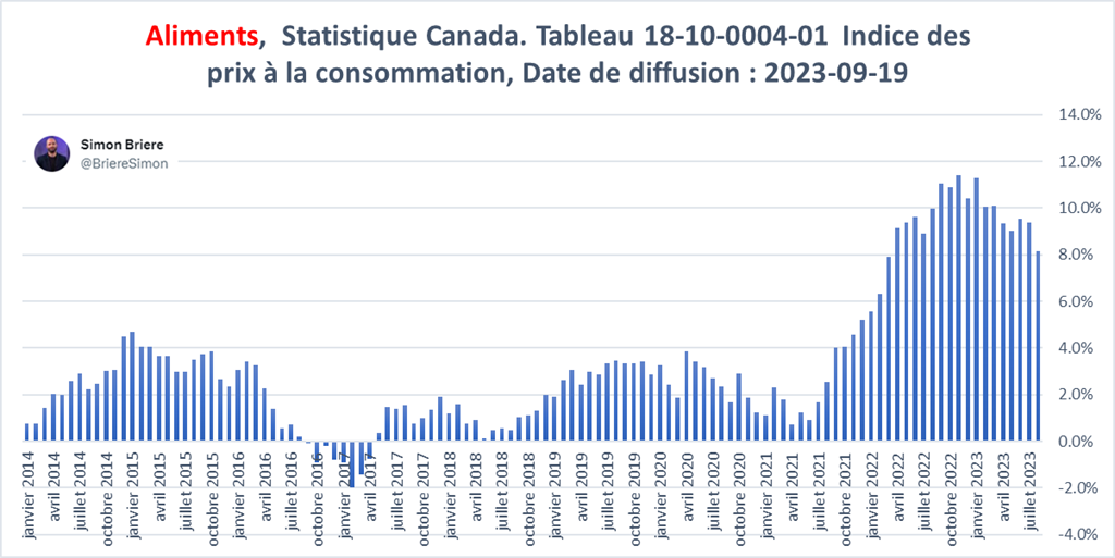 #8 Le taux d’inflation alimentaire au Québec de 8.2%