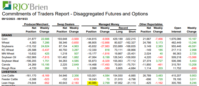Dernier point, et non le moindre, nous suivrons avec attention le rapport Hog & Pig du USDA qui sera publié ce jeudi 28 septembre à 15 :00. Les analystes ont publié leurs estimations. Ainsi pas beaucoup de croissance anticipée! On peut bien voir que l’industrie s’attend à une continuité dans la décroissance du nombre de porcs produits au cours des prochains mois. Reste à savoir si cela se produira dans un futur proche. Si je fais de la numérologie pour l’année 2024, nous devrions être dans la maison 8 (2+0+2+4=8) et la maison 8 représente Argent & Patrimoine (expansion matérielle) , et par conséquent ca devrait une bonne année financière non?