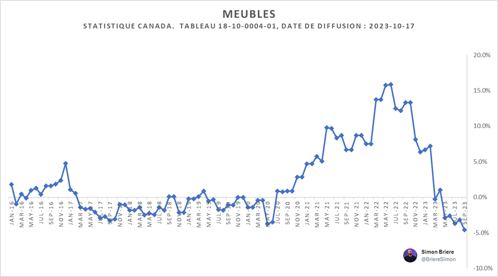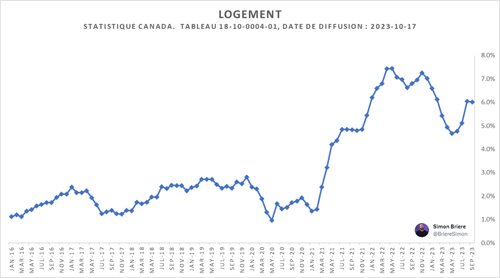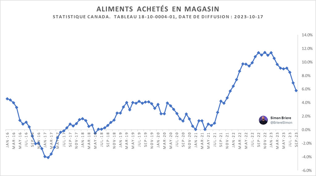 Considérant que ce n'est pas à l’épicerie (hausse de 5.8%). Oui, le taux d'augmentation ralenti... mais le prix du panier augmente néanmoins. By the way, au resto, c'est 6.1% de hausse.