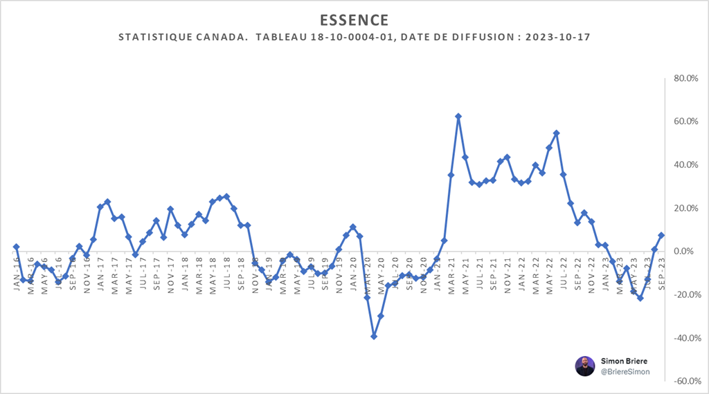 Faire le plein d'essence? Non pas vraiment. Ça coûte 7.5% cher en septembre cette année.