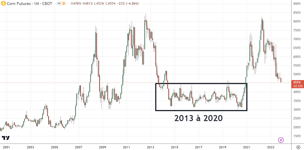 La grande question pour l’avenir…. Quand est-ce que ça revient? Bientôt? Pas bientôt? Jamais? Pour espérer une hausse des prix, ça prend soit une mauvaise récolte ou une demande extraordinaire. Économiquement, il faut donc une rareté. Mais la rareté est désormais derrière nous… ça peut prendre une saison (année) ou deux, ou plusieurs. La dernière fois en 2013 suite à la sécheresse de 2012 la rareté a pris 6-7 ans avant de revenir pour la peine. Il y a eu des rebonds ici et là durant l’été, mais jamais comme on vient de connaitre pendant 3 ans.