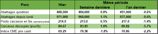 Par conséquent, peut-on imaginer voir une croissance de la production porcine en 2024 aux États-Unis? Peut-être, si jamais nous avons des chiffres de productivité ahurissant comme ceux réalisées en 2023!