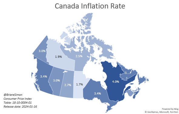 Ah oui, j’oubliais… l’inflation au Canada a remonté en décembre… ugh. On avait 3.1% en novembre, elle est remonté à 3.4% en décembre. Le combat n’est donc pas terminé. Si l’inflation demeure élevée comme c’est le cas actuellement, ca rendra la tache difficile à la Banque du Canada de baisser les taux. On s’attend à ce que ça baisse… mais de combien? Quand? Et surtout, de quelle façon. Il y a une méchante différence entre baisser graduellement parce que tout vas bien ou baisser agressivement car tout fout l’camp. M’enfin. On verra bien.