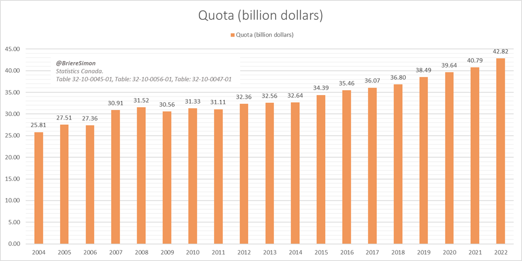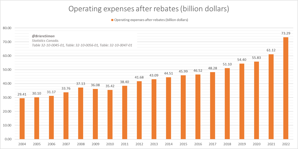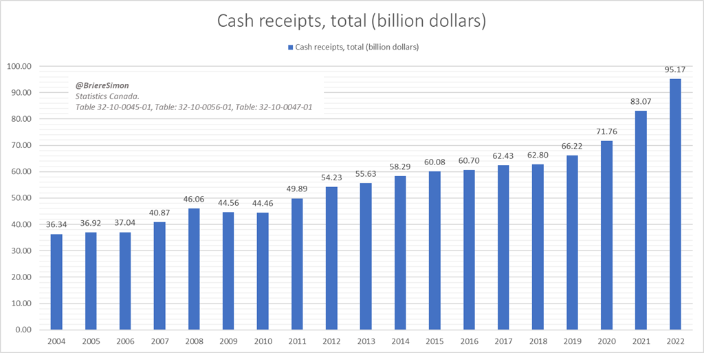 Revenus moins coûts… le revenu net en espèces est actuellement record au Canada (dernières données 2022), et je m'attends à ce que 2023 ait des valeurs similaires, quoique probablement un peu inférieures.