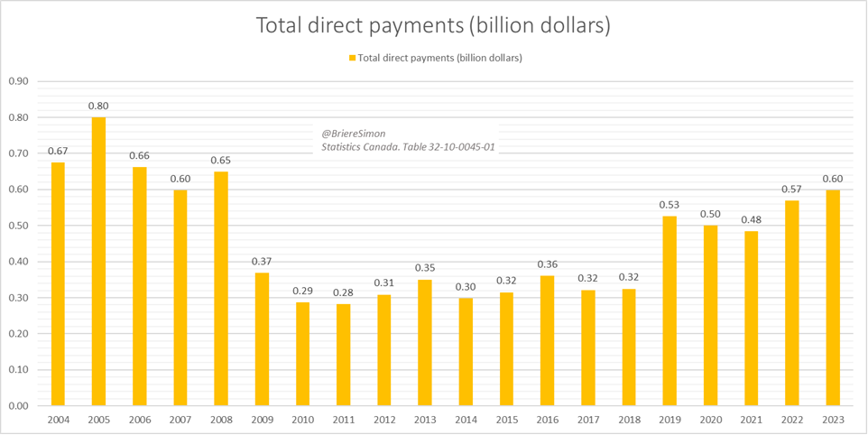 Peut-être parce que le total des paiements directs du Québec atteint un niveau record ? 1,14 milliard de dollars