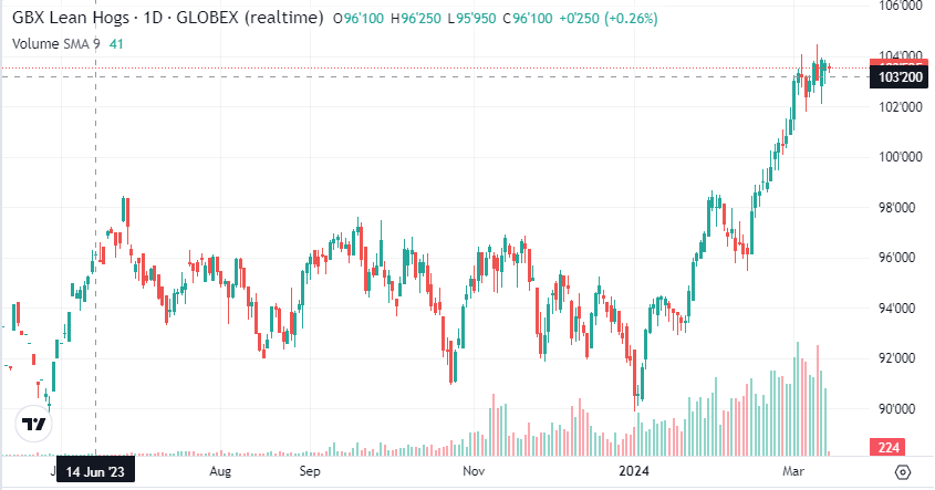 Contrat de Lean Hog de juillet 2024 (en cents / livres)