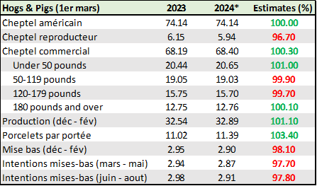 Estimations pour le rapport Hog & Pig (mars 2024)
