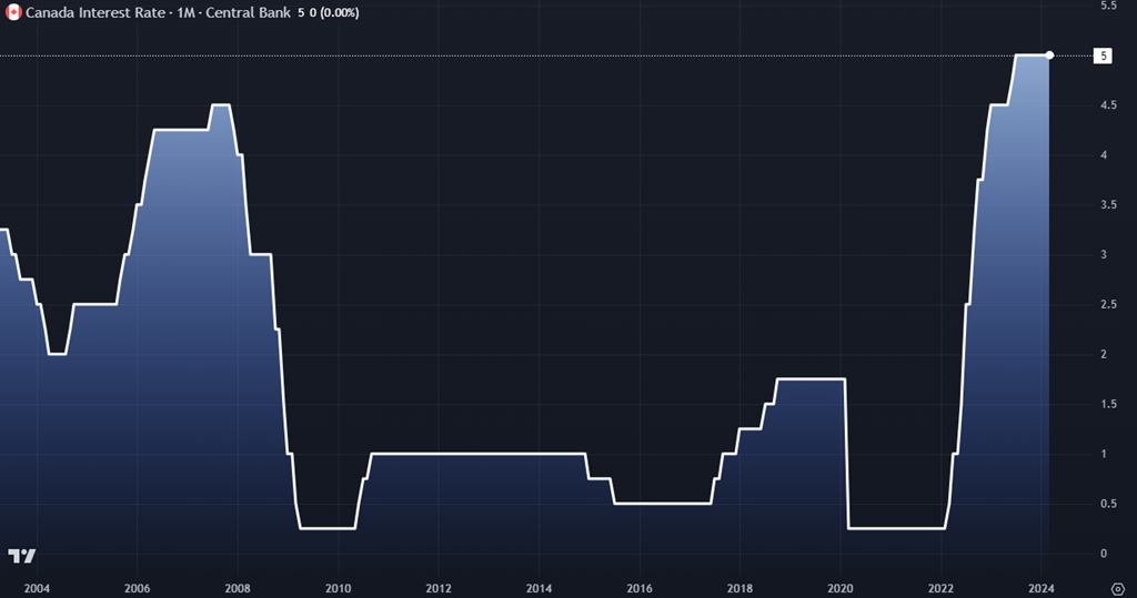 Ensuite c’est la décision sur les taux d’intérêts de la Banque du Canada. On s’attend à un statu quo – pas de changement, on reste à 5%. Je suis plus particulièrement intéressé de lire le Rapport sur la politique monétaire que la décision en tant que tel. C’est là le fun…. Ben….. MON* fun, je suis un nerd haha. À mon avis les hausses de taux sont finies au Canada, je ne vois pas l’utilité de les monter. L’inflation est de mieux en mieux contrôlée, pas le klondike encore, mais de mieux en mieux. On est vraiment dans le virage des politiques monétaire. Ce fameux PIVOT! On commence à avoir suffisamment d’arguments pour baisser, mais on pourrait aussi avoir assez d’argument pour les maintenir au niveau actuel. C’est le propre d’un virage de la sorte; un moment donnée faut virer, prendre une décision et aller de l’avant. Let’s go. Mais à mon avis c’est un peu hâtif pour 3 raisons.