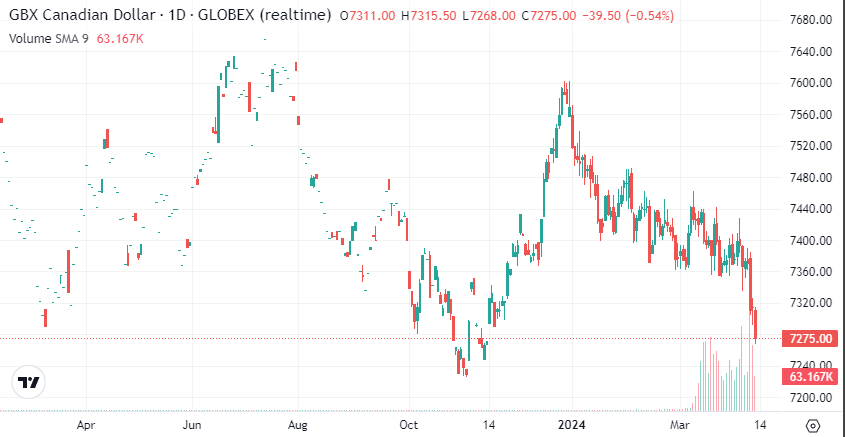 Les prix des contrats à terme se sont détériorés depuis 2 jours. Par contre, notre devise canadienne se fait malmener sur les marchés. On repousse l’idée de voir les baisses de taux d’intérêts aux États alors qu’au Canada, les baisses devraient arriver en juin si tout se passe selon le plan. A moins que le Gouvernement canadien ne dépense encore en fou pour stimuler l’économie notre économie devenue moribonde. La FED pourrait passer à l’action plus tard en 2024 ou peut-être pas du tout (pas de baisse!). Et le différentiel de taux d’intérêt entre le Canada et les États-Unis n’irait qu’en s’aggravant creusant la perte sur le huard. Ce qui est une bonne nouvelle pour le prix du porc au Canada et tous les exportateurs canadiens.