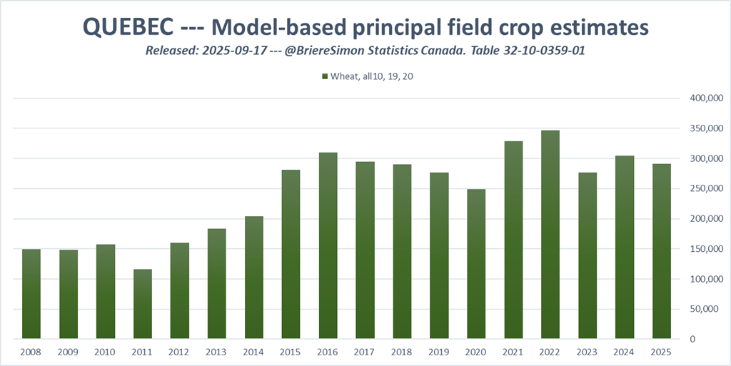 - StatCan : Estimations des principales grandes cultures (SURPRISES!!)