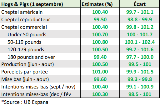 Or, on sait déjà qu’il y aura des révisons importantes des 2 rapports précédents (mars et juin). On l’a vu tout au long de l’été combien le nombre de porcs abattus ne collaient pas aux données statistiques et théoriques du USDA de juin dernier. Parfois, la maladie et certains problèmes prennent le pas sur la théorie. Il ne faudra pas casser trop de sucre sur le dos du USDA.